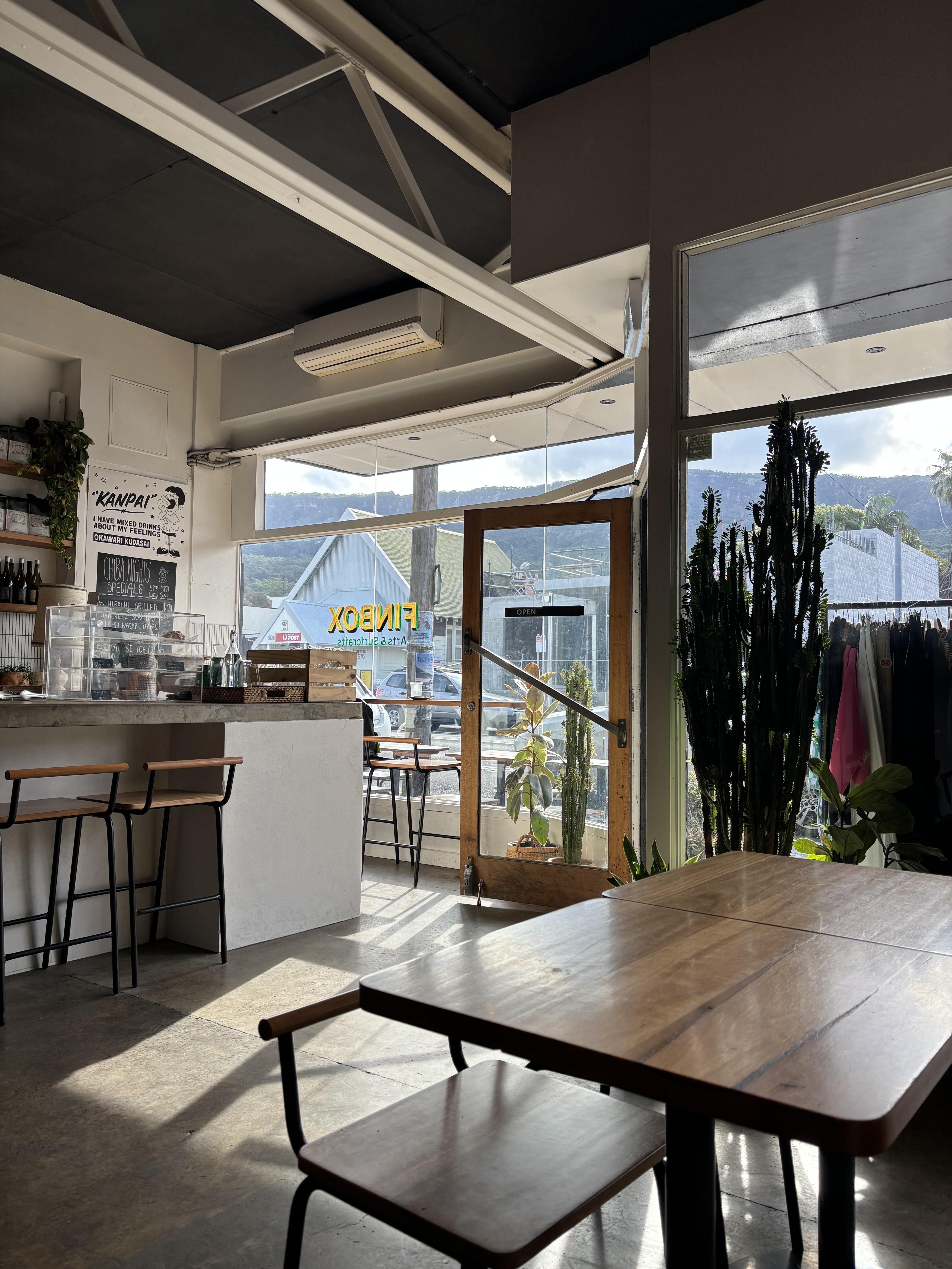 가게의 왼편은 서핑보드와 수영복 및 옷을 판매하는 편집숍이고, 오른편은 카페와 식당을 겸하는 공간이다. 구글맵에는 매일 오후 4시까지 영업을 한다고 나오는데 그건 왼쪽 편집샵이고, 카페는 오후 2시까지만 영업하니 유의할 것!! 수~토요일 저녁에는 일본 음식을 판매한다고 한다.