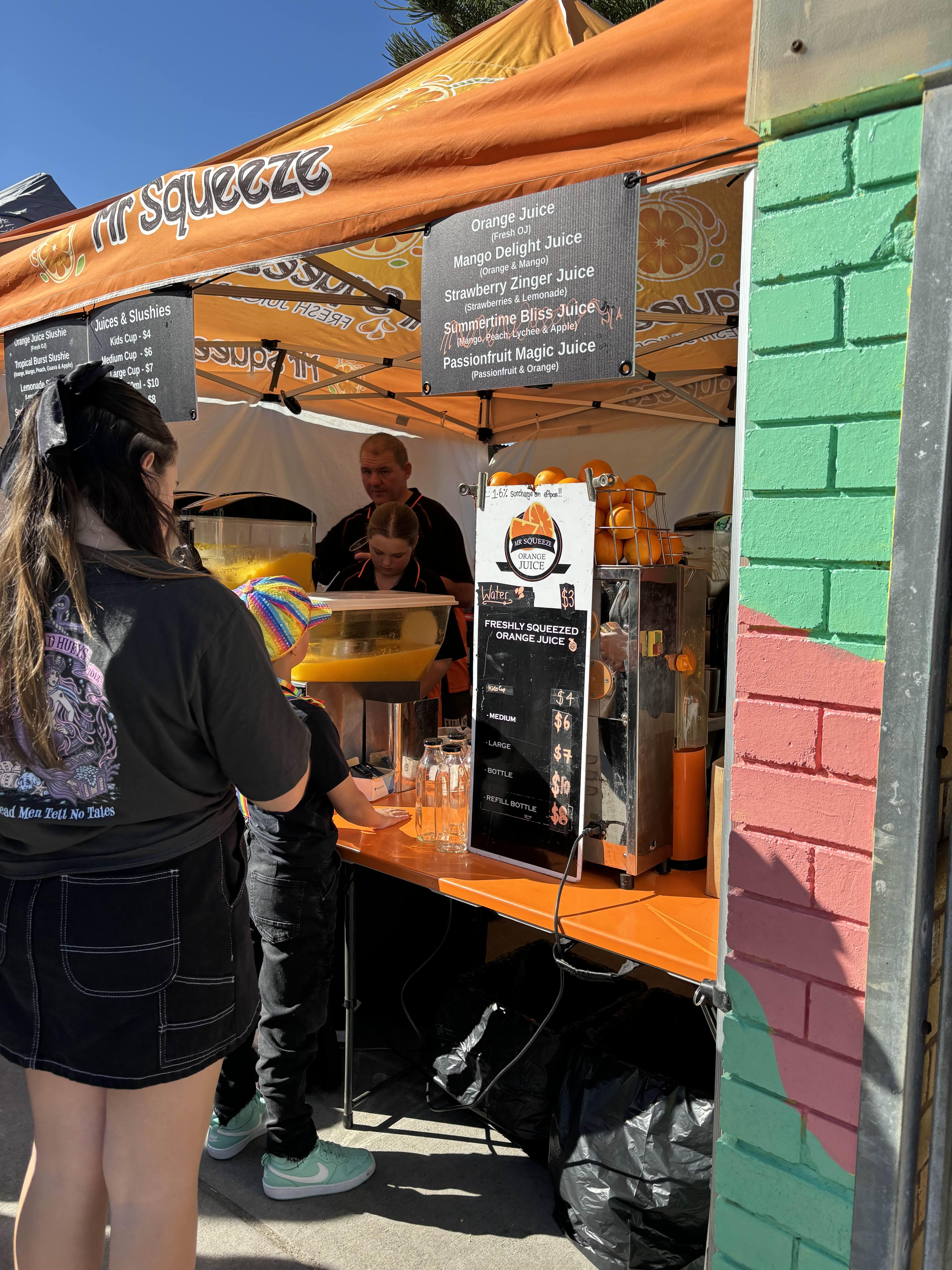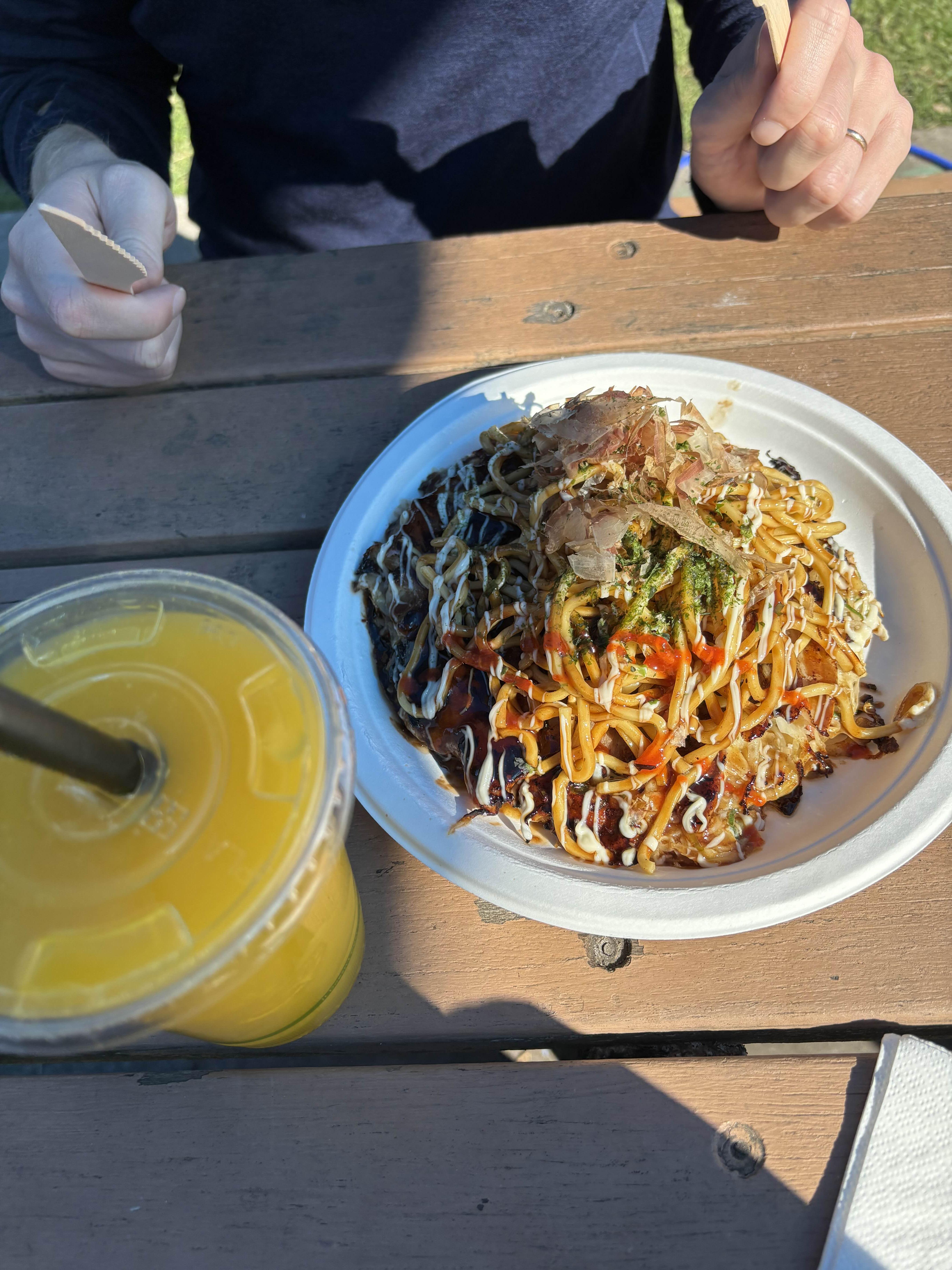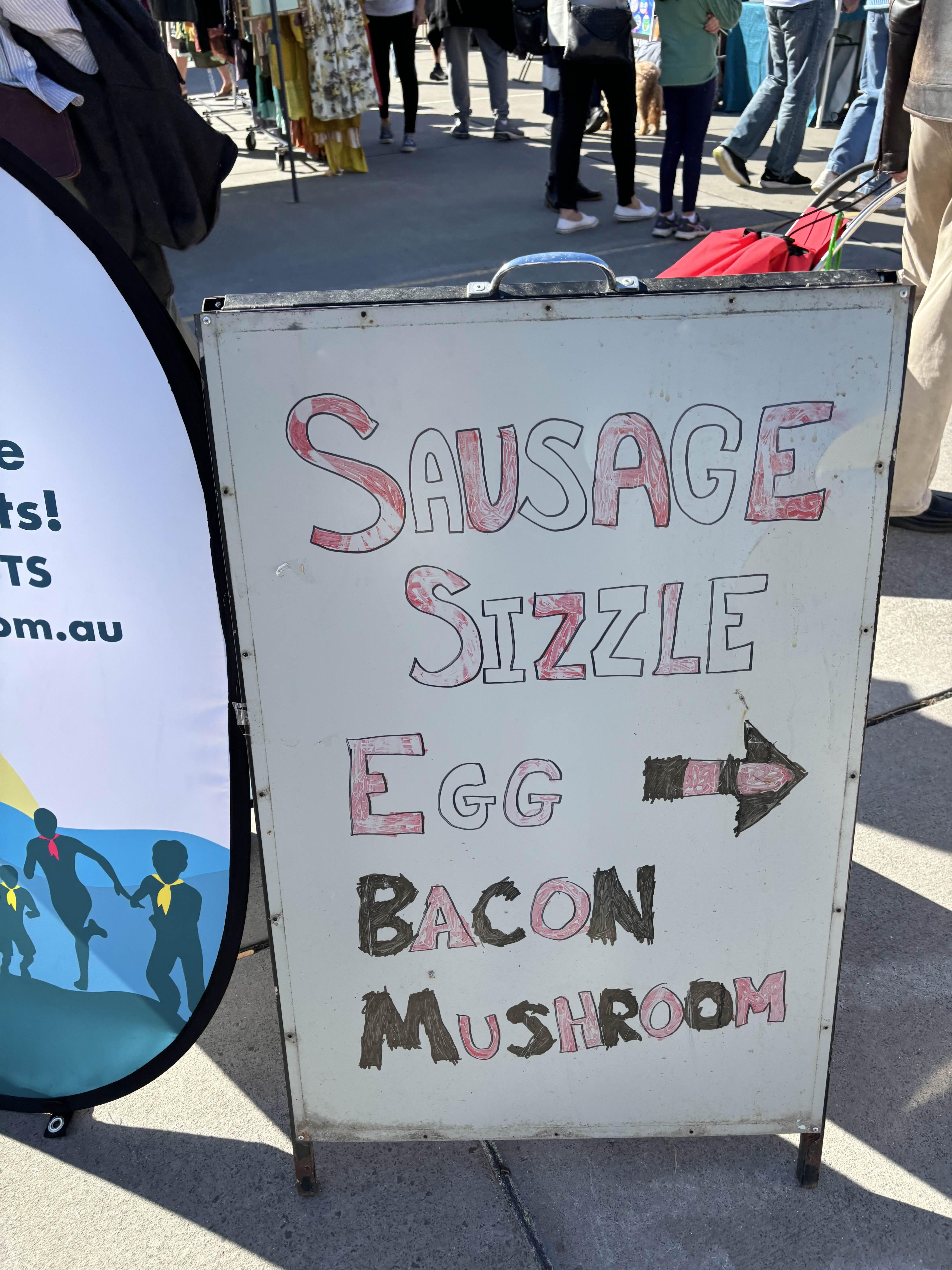 마켓에 왔다면 먹거리를 빼놓을 수 없다. 베이커리, 디저트부터 시작해서 바로 짜내는 오렌지 주스, 상그리아, 이런 마켓에 빠질 수 없는 소시지 시즐(식빵에 구운 소시지와 양파를 끼워 넣어 먹는 호주 길거리 음식), 다양한 문화권의 음식들까지 없는 것 빼고 다 있다. 여기서 오꼬노미야끼도 판매하길래 사 먹어보았는데 정말 너무 맛있었다!