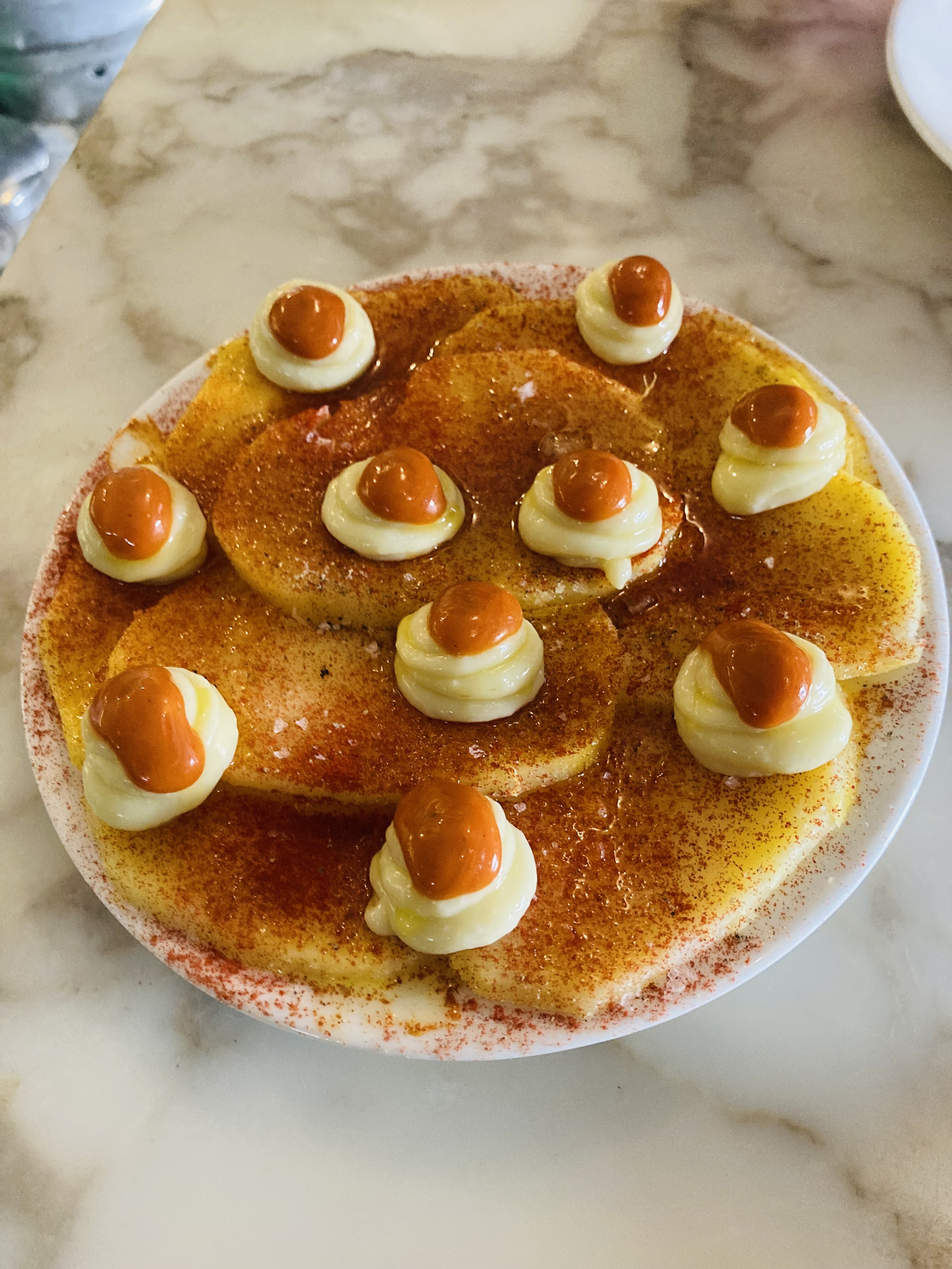 - Tramendes의 시그니처 메뉴인 것 같다. 후기에서도 이 메뉴 사진이 제일 많이 보였다. 정통적인 깍두기 모양의 감자는 아니지만 오히려 얇게 슬라이스해서 깔아놓은 감자가 더 매력적으로 느껴졌다.
