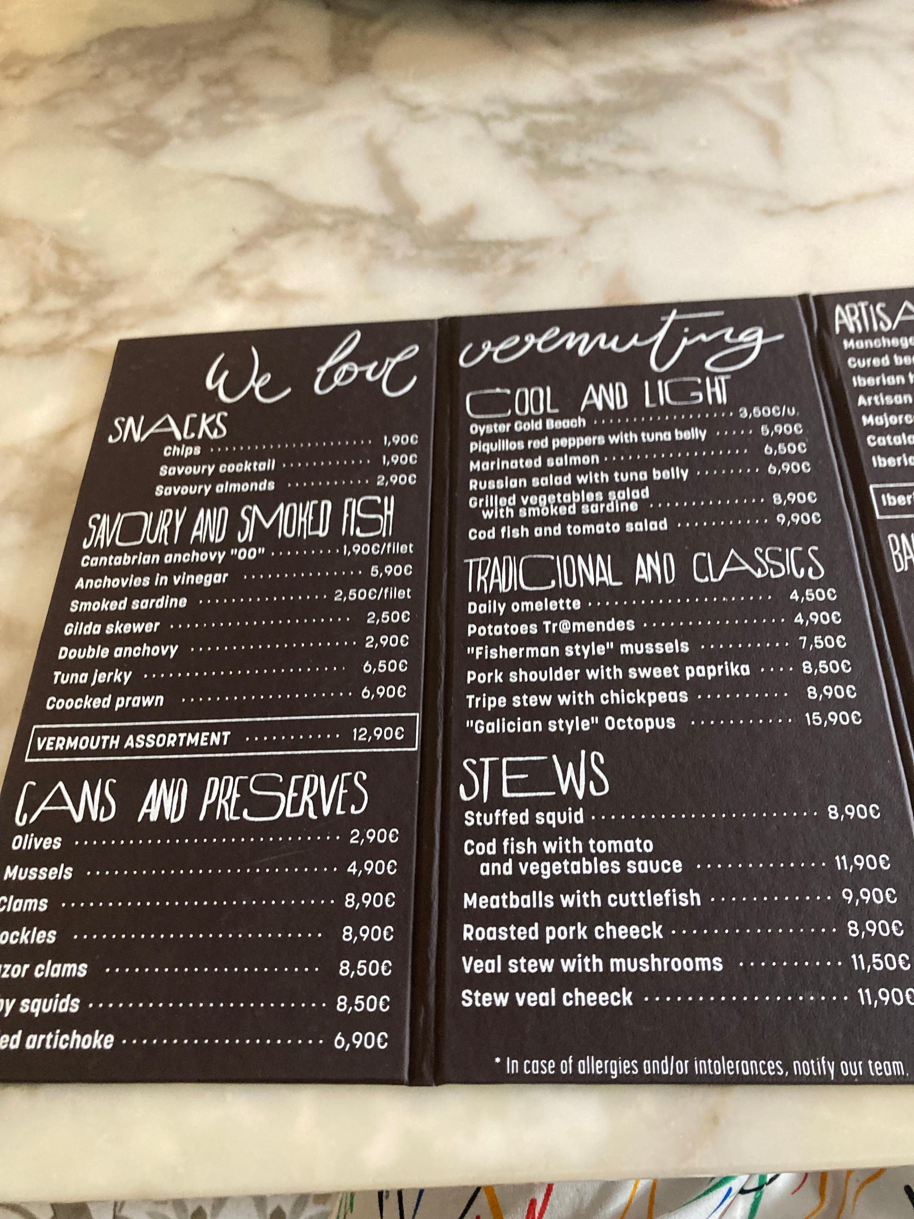[참고] Tramendu Vermuteria 메뉴판 (2023년)