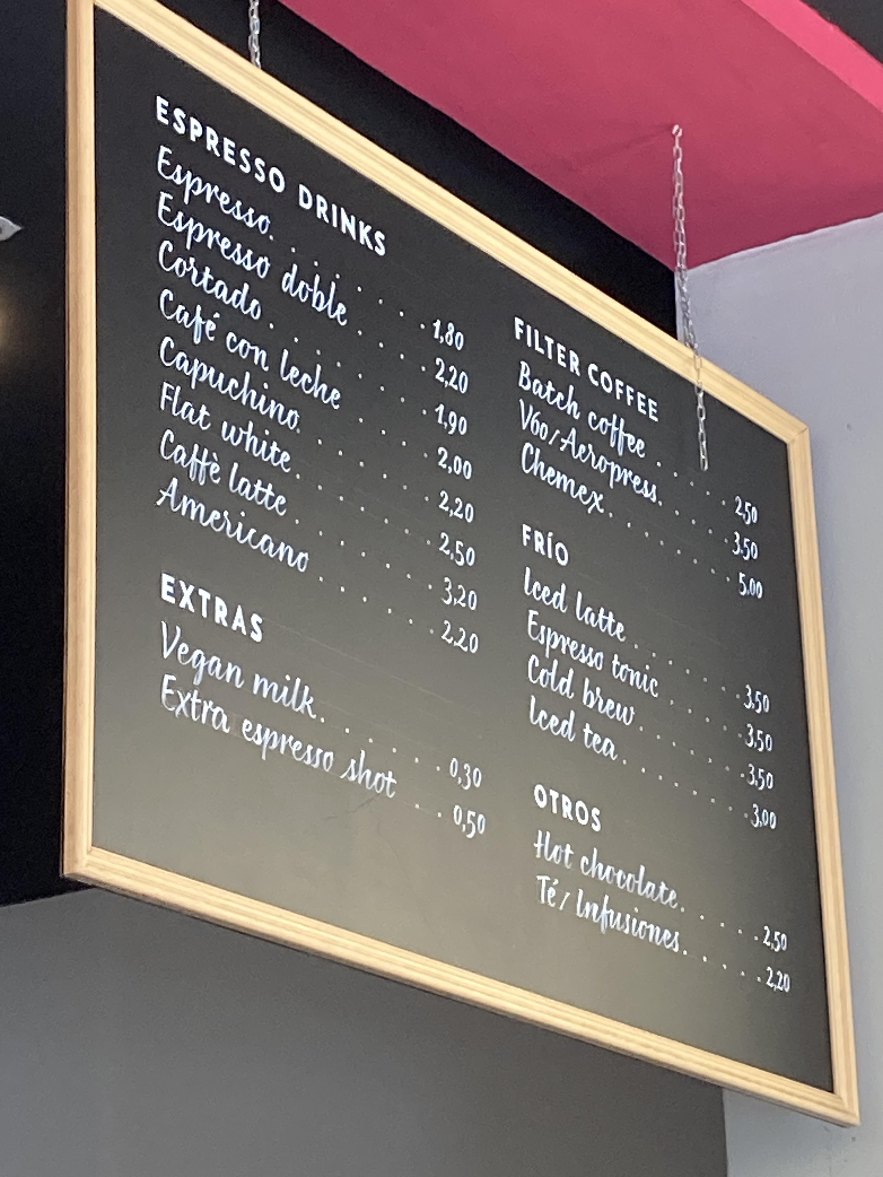 찐 커피전문점이다. 주인분이 커피에 정말 진심인 것 같았다. 여기서는 아이스 말고 따뜻한 커피를 시켜 먹었는데, 스페인의 커피 음료인 Cortado, Cafe con leche를 주문해서 먹어보는 것을 추천한다. 이름이 생소할 뿐이지 우유 양만 차이가 있는 라테라고 생각하면 된다. Cortado < Cafe con leche < Flat White < Latte 순으로 우유양이 많아진다. Cortado(꼬르따도, 코르타도)와 Cafe con leche(카페 콘 레체)는 스페인에서 유래한 커피 음료 종류이니 커피를 좋아하는 사람이라면 꼭 마셔보기 바란다.