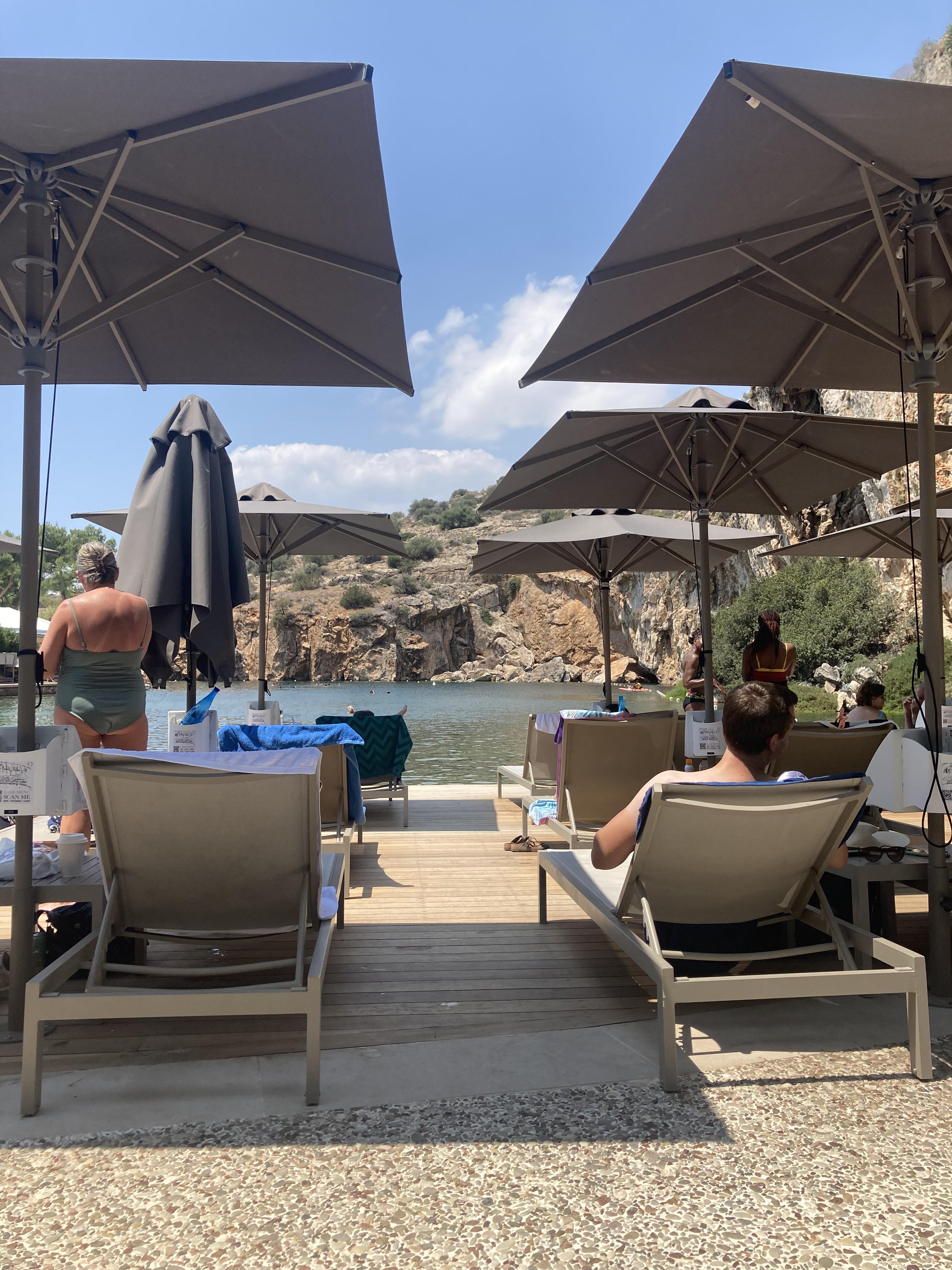그러던 중, 수니온곶 투어를 가다가 가이드가 잠깐 들러서 소개해준 호수를 하루 시간 내어 다녀오는 것으로 의견이 일치했다. 멋진 절벽에 둘러싸여 있고, 수온이 적당히 따뜻한 온도를 유지하고 있으며, 닥터피쉬가 있어서 무료로 각질을 먹어주는 곳이라니 생각만 해도 재밌을 것 같았다. 그리고 멀리서 바라본 그 호수가 너무나 멋져 보여서 관광에 지친 발과 몸을 하루쯤은 푸욱 쉬어주는 것도 좋을 것 같았다.