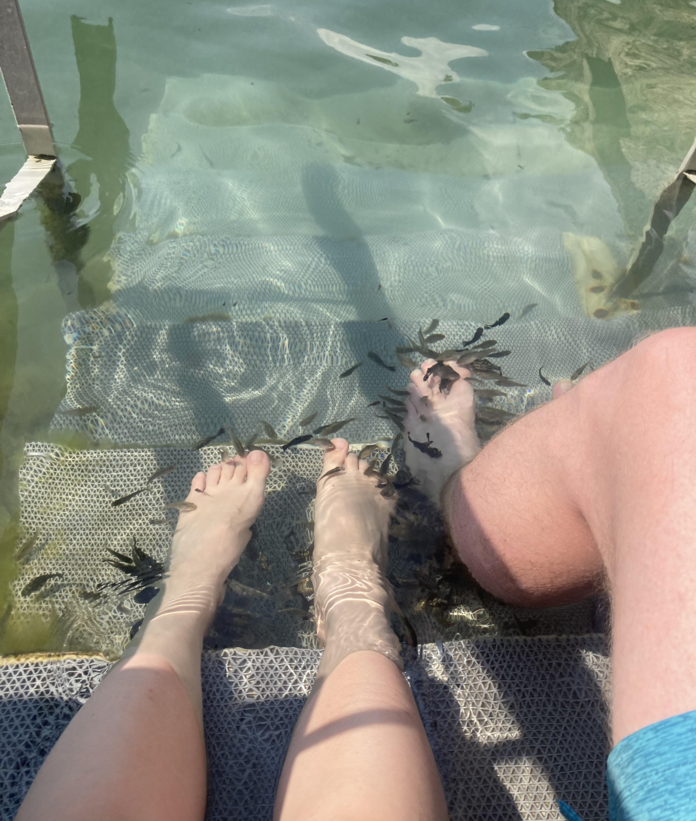 닥터피쉬 발 각질제거는 처음 해봤는데 발을 담그면 닥터피쉬가 몰려와서 열심히 발 각질을 먹는다. 생각보다 되게 간지럽고 느낌이 이상했다. 마사지 샵에서 돈주고 받는 서비스를 여기서는 호수에 입장하기만 하면 공짜로 받을 수 있으니 야무지게 즐겨야 한다. 호수에서 수영을 즐기는 사람 반, 닥터피쉬에게 발을 내어주는 사람 반이었다.