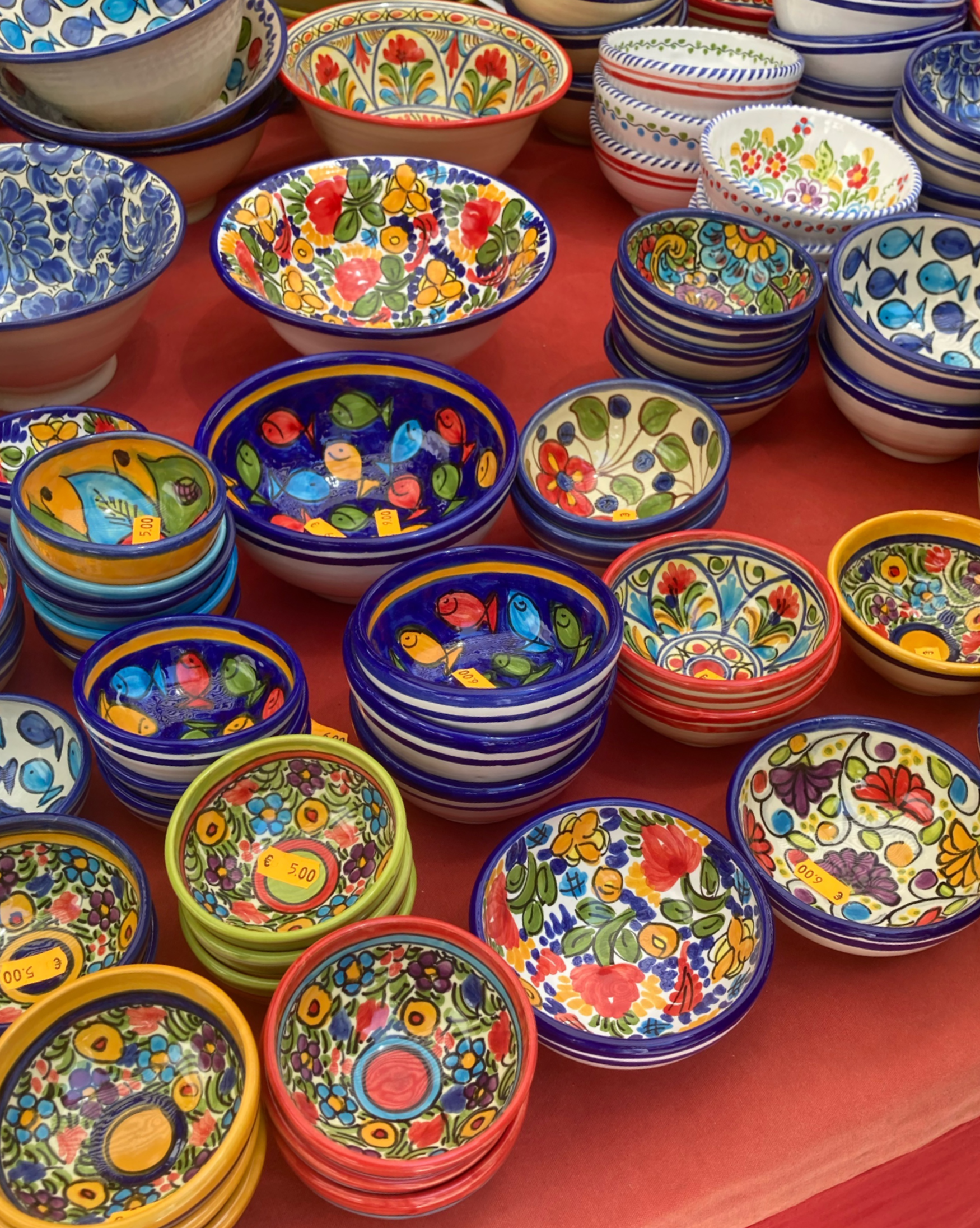 화려한 프린팅의 종지라던지 컵은 너무나 사 오고 싶었으나 배낭여행객 특성상 그릇을 이고 지고 다닐 수 없기 때문에 눈으로만 감상하고 왔다. 핸드페인팅이라 그런지 그릇마다 조금씩 퀄리티가 다르다.