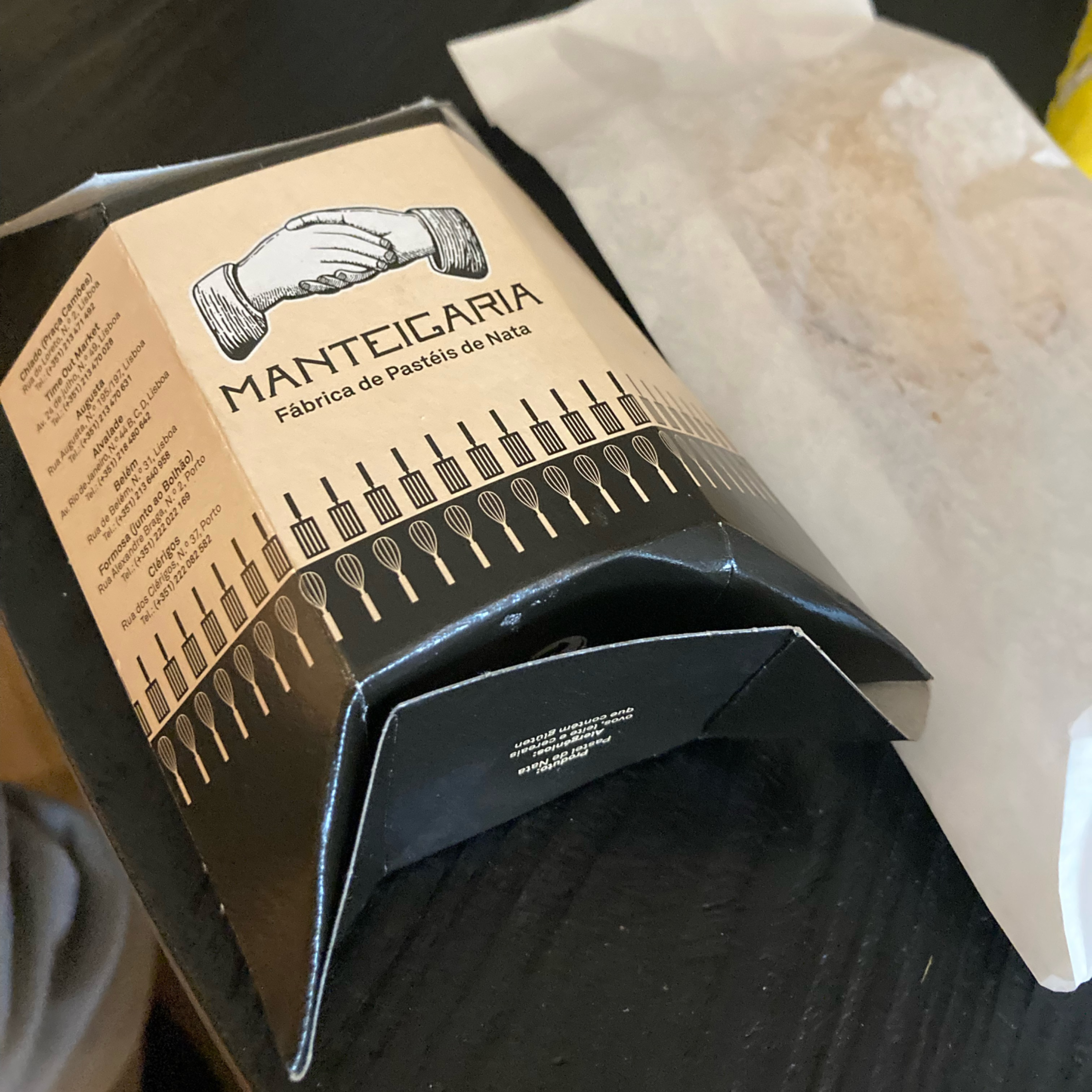 Manteigaria 본점은 숙소와 가까워서 지나가는 길에 들러서 테이크아웃을 했다. 유명한 렐루서점에서 그리 멀지 않으니 동선을 함께 짜도 좋을 것 같다. 내 기억에 이곳은 앉아서 먹을 공간은 잘 마련되어 있지 않았던 것 같다. 포르투갈에서 에그타르트를 포장하면 에그타르트를 위한 종이 포장지가 따로 있는데, 에그타르트 두 개를 포개서 넣으면 딱 들어가는 육각형의 상자이다. 에그타르트가 얼마나 유명하면 이렇게 전용 포장지까지 있는지 신기할 따름이다.