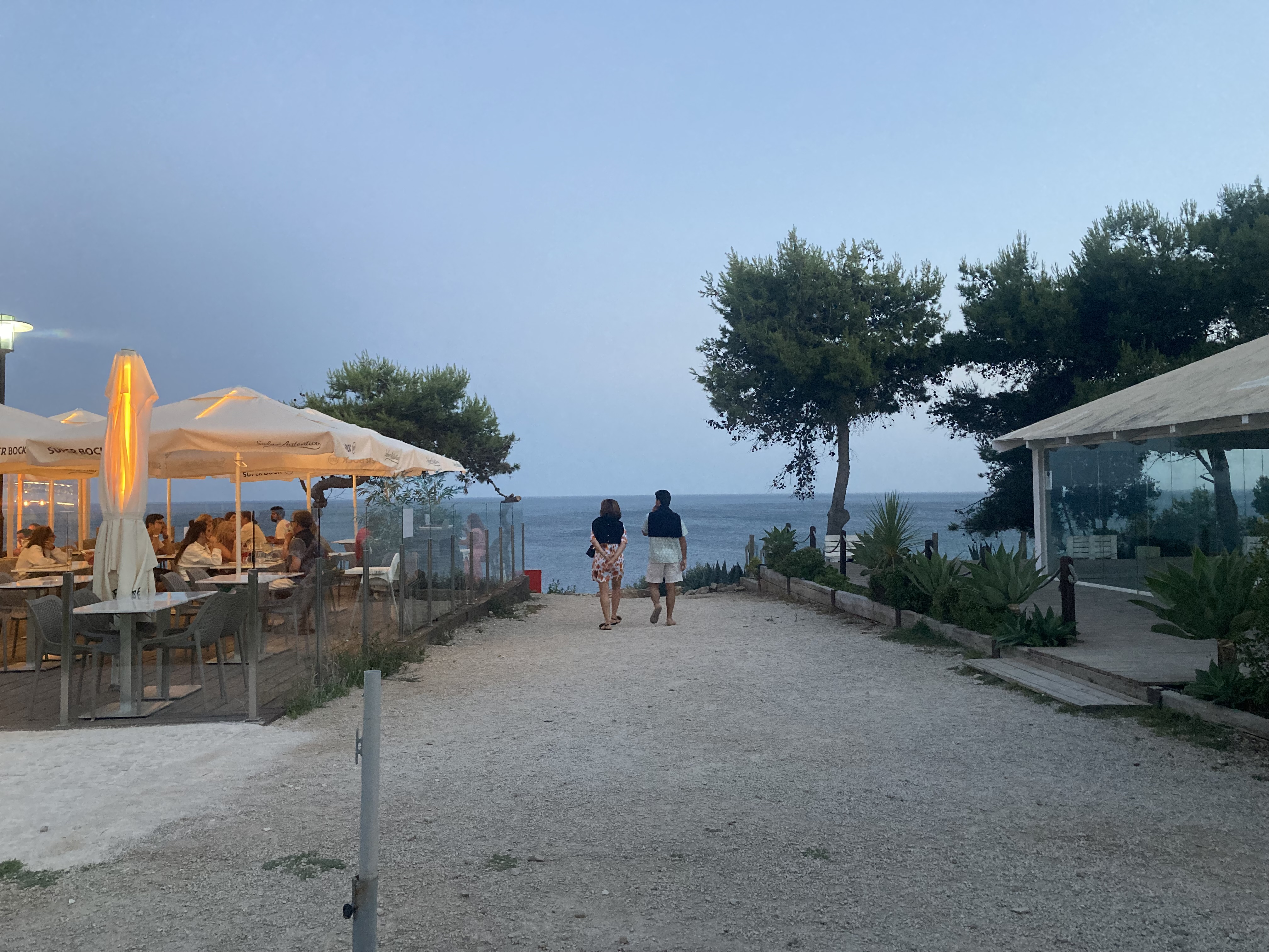 바다에 놀러 갔다가 석양이 지기 전에 도착한 식당은 이미 신나는 음악이 흘러나왔고 사람들로 꽉 차 있었다. 약간의 기다림 끝에 테이블 하나를 안내받았다. 바다 바로 앞에 있는 곳이었는데 멋진 절벽을 함께 볼 수 있었다. 여기가 포토존이었는지 우리가 먹고 있는 테이블 앞으로 사람들이 많이 와서 사진을 찍고 갔다.