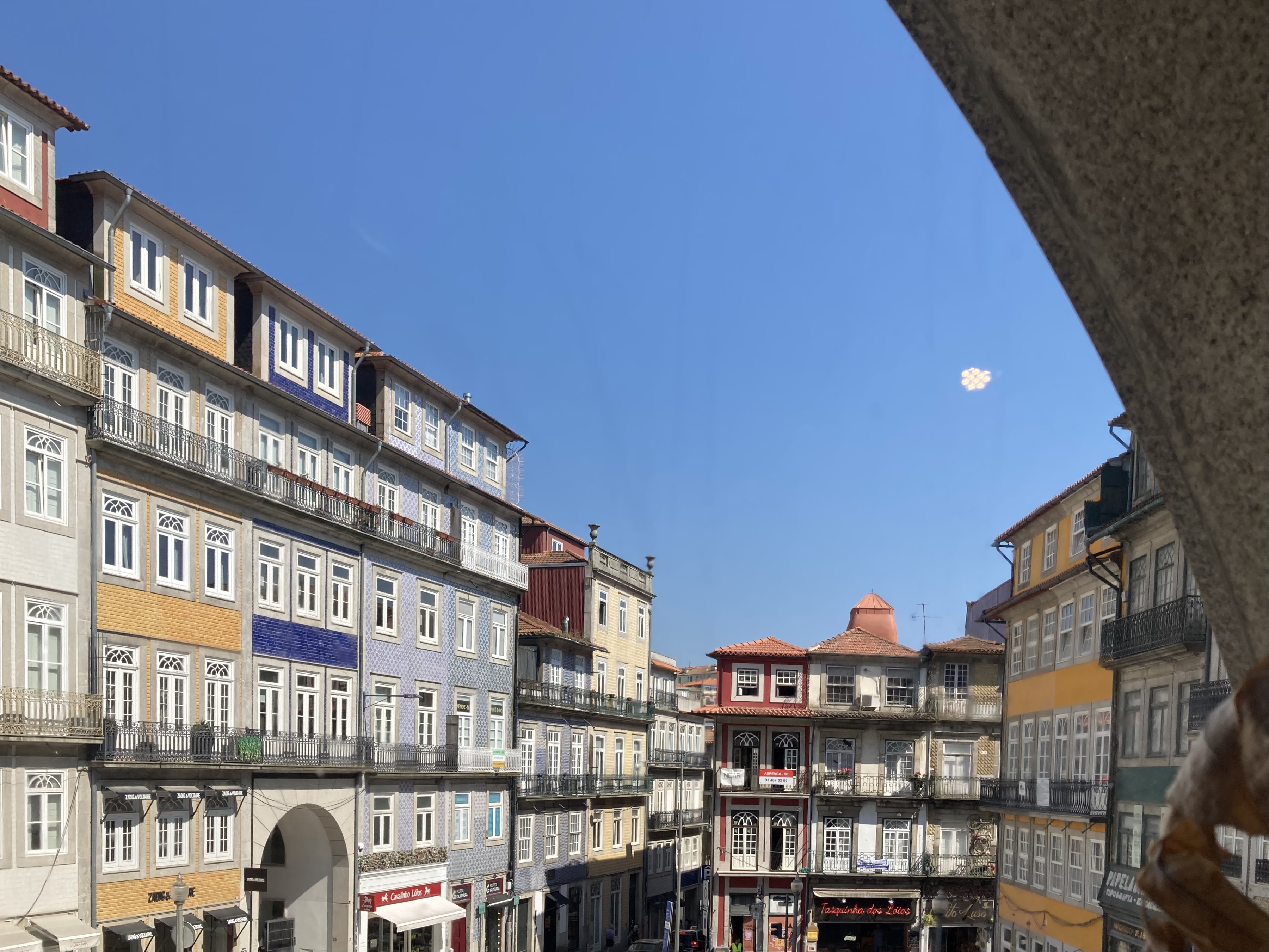 아치형으로 되어 있는 창문이 카페 공간에 아늑함을 더하는 것 같다. 앞이 공사 중이기는 했지만 각도를 위로 틀면 예쁜 건물들이 보이는 아름다운 사진을 건질 수 있다. 사진 찍는 것을 좋아하는 사람이라면 이곳이 바로 손에 꼽는 포르투 포토존이니 슬며시 가보길 바란다.